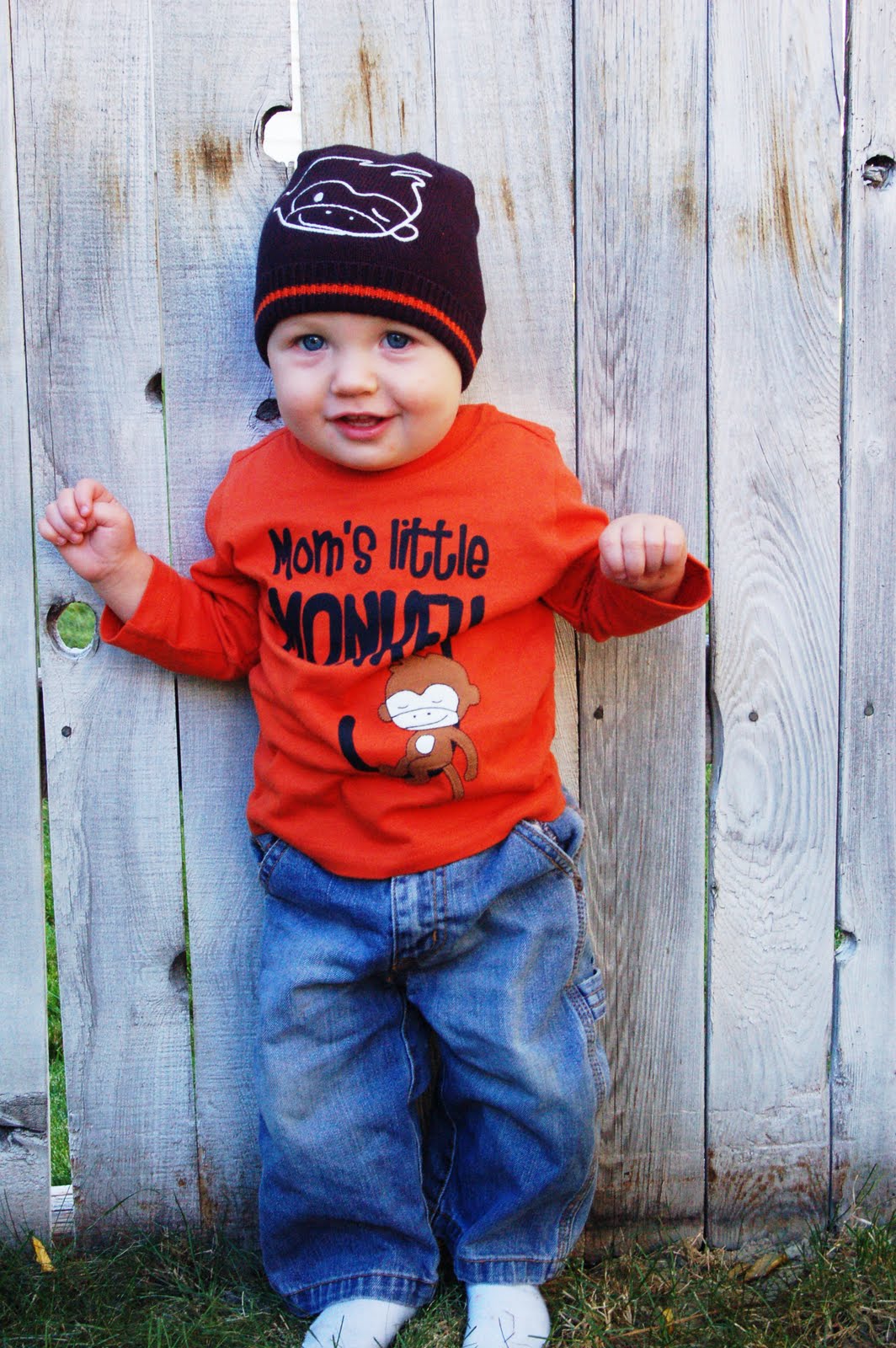 On November 2nd Riley our little Jelly Bean turned one. We are so happy to have such a sweet baby or should I say toddler in our home. Riley is such a happy and content kid. He puts up with lots of tough love from his big brother. Riley enjoys playing with toys and trying to keep up with Taylor. Riley is 30 inches long 20.5 pounds. He has a mouth full of teeth that he loves to bite people with, yes we are working on that. I love Riley's bald head, we were in primary a few weeks ago and one of the little girls asked, "What happened to your baby's head, all his hair fell out." Riley fits right in with the family he loves to sleep like Taylor and I. He goes to bed along with Taylor at 7:30 and gets up aournd 8:30! We love you Riley!